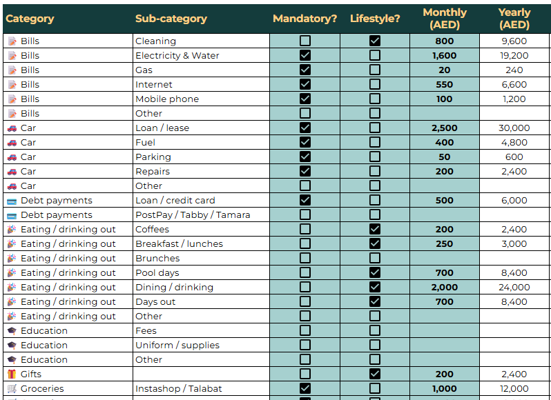 Free UAE Budget Planner